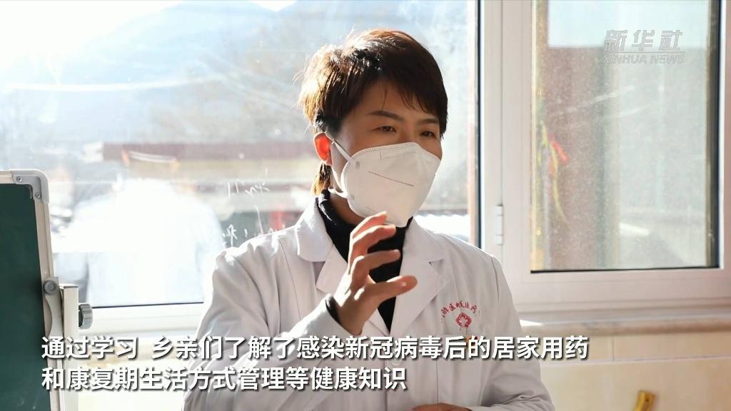 在木廠口鎮(zhèn)劉新莊村的一戶農(nóng)家,由鎮(zhèn)衛(wèi)生院醫(yī)生主講的防疫知識課吸引了左鄰右舍前來聽課。通過學習,鄉(xiāng)親們了解了感染新冠病毒后的居家用藥和康復期生活方式管理等健康知識。