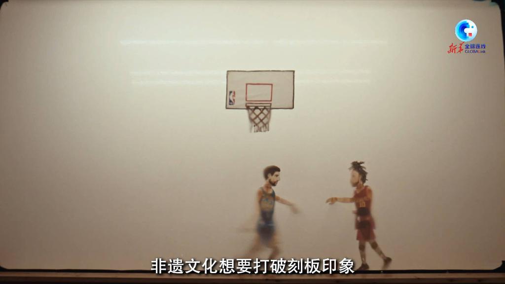2022年底,NBA中國與劉朝侃團(tuán)隊達(dá)成合作,在村里的老戲臺為村民獻(xiàn)上了一場特別的皮影表演:在百年戲臺上演皮影版的美職籃(NBA)籃球賽,村里的老老少少齊聚戲臺下觀看。
