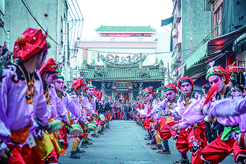 汕頭市潮陽區非遺保護中心主任翁木順說,從演員面具臉譜的發展變化可以看出端倪——早年的臉譜和儺舞相似,后來戲劇角色占據了主流,如今則主要借鑒小說《水滸傳》中的人物形象。