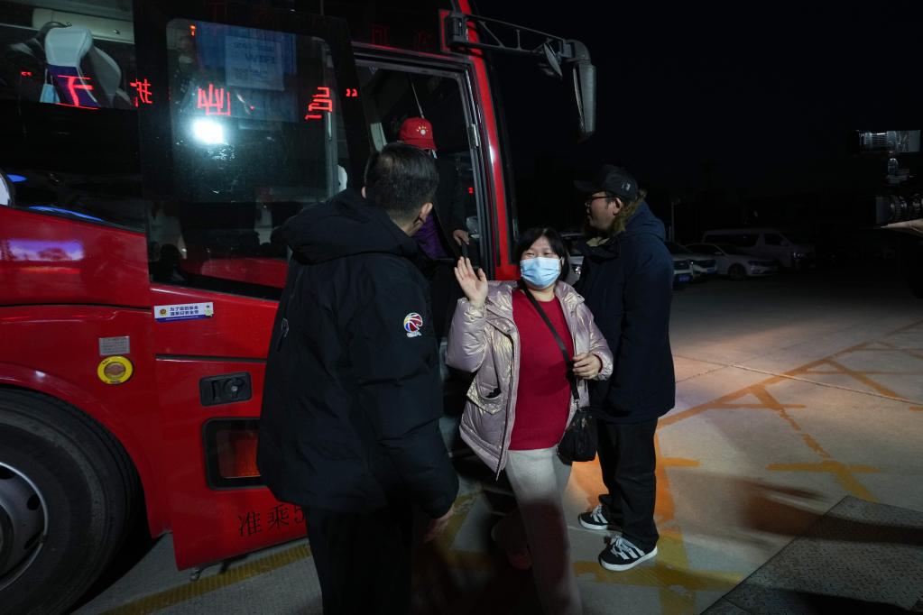 2月4日,呂梁護工復(fù)工專車抵達北京市房山區(qū)今日東方培訓基地。新華社記者 鞠煥宗 攝
