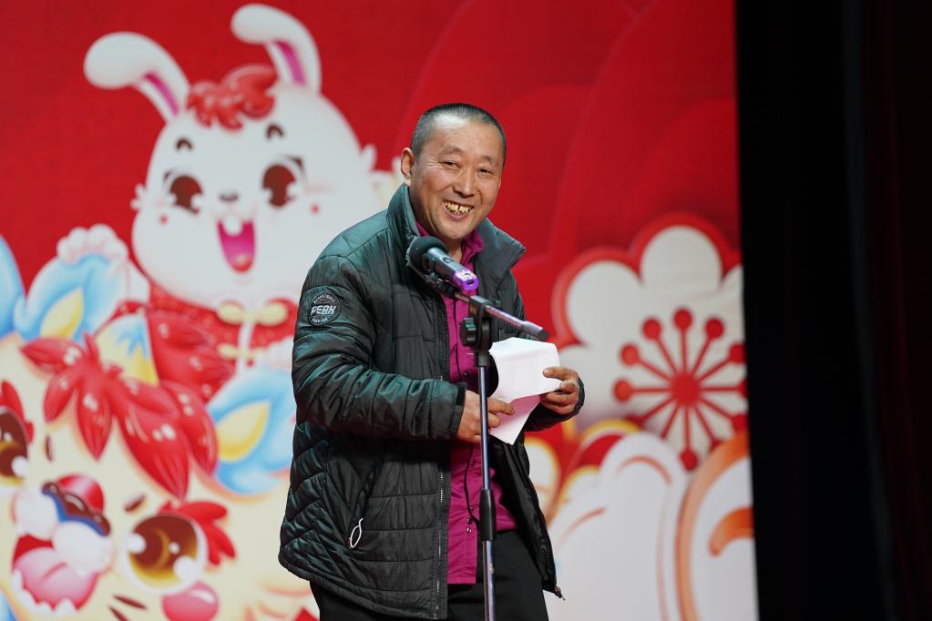 2月4日,在北京市房山區(qū)今日東方培訓基地,呂梁護工代表任吉祥在歡迎儀式上發(fā)言。新華社記者 鞠煥宗 攝