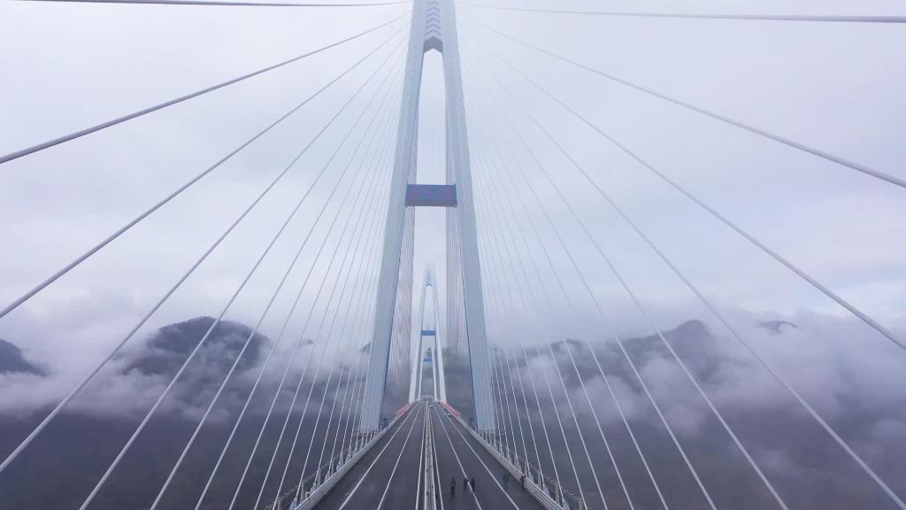 2019年建成通車的平塘特大橋,全長2135米,橋面寬30.2米,橋面距河面高差300米,主跨跨度達550米。橋塔采用鉆石形設計,主塔高達332米,相當于110層樓高,是世界最高的混凝土橋,也被譽為最美的“天空之橋”。
