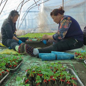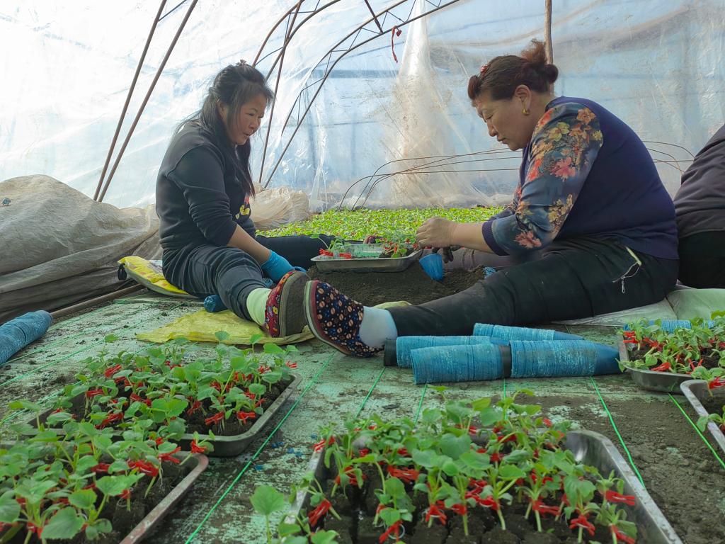 德惠市布海鎮瓜農正在大棚內育苗。(新華社記者薛欽峰 攝)