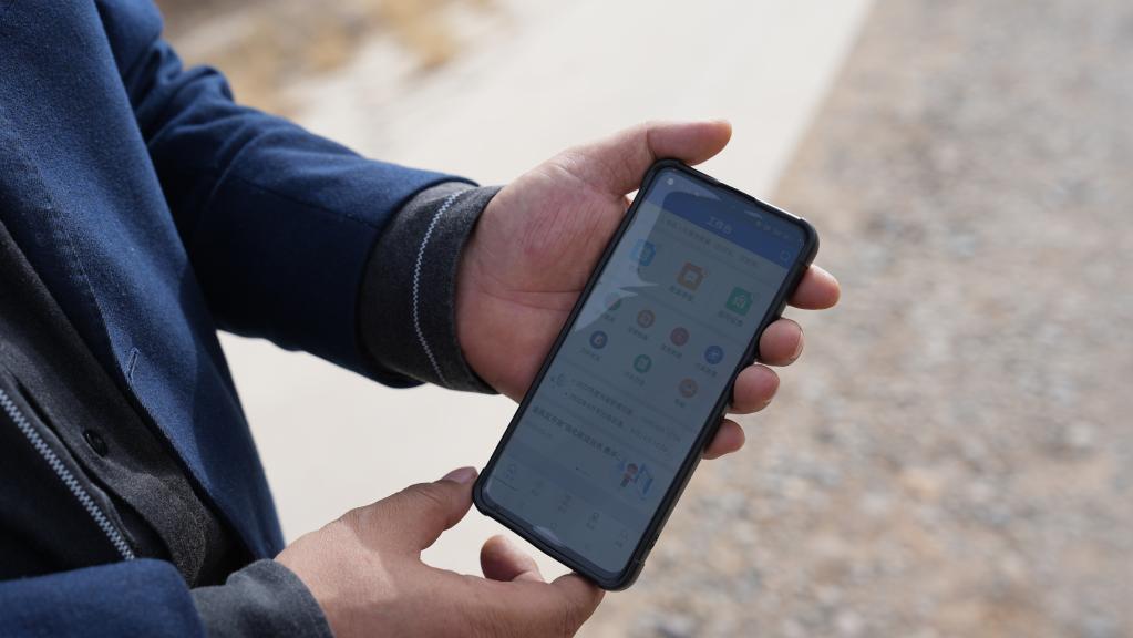 桂濤使用“河長通”手機(jī)App進(jìn)行巡河打卡。(新華社記者鄒欣媛 攝)