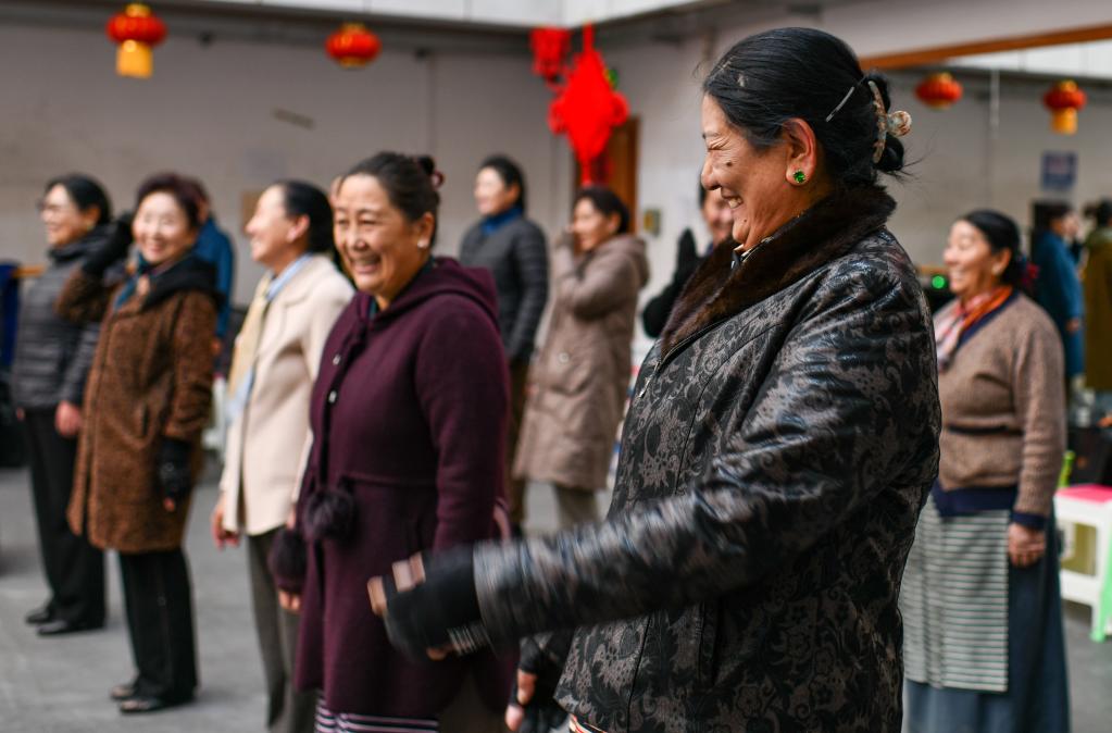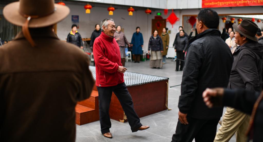 3月的拉薩氣溫雖已逐漸回暖,但早晚的寒意仍未退去。與往常一樣,一大早,西藏自治區(qū)群藝館一樓排練大廳內(nèi),悠揚的扎念琴聲、時快時慢的踢踏舞聲、男女混合的傳統(tǒng)藏族歌曲和歡笑聲不時傳出,為初春的古城增添了一抹暖意。