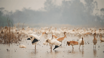 中國(guó)最大淡水湖鄱陽(yáng)湖是瀕危物種白鶴的主要越冬地。每到秋冬時(shí)節(jié),全球約98%的白鶴從俄羅斯西伯利亞飛越數(shù)千公里來到鄱陽(yáng)湖越冬。