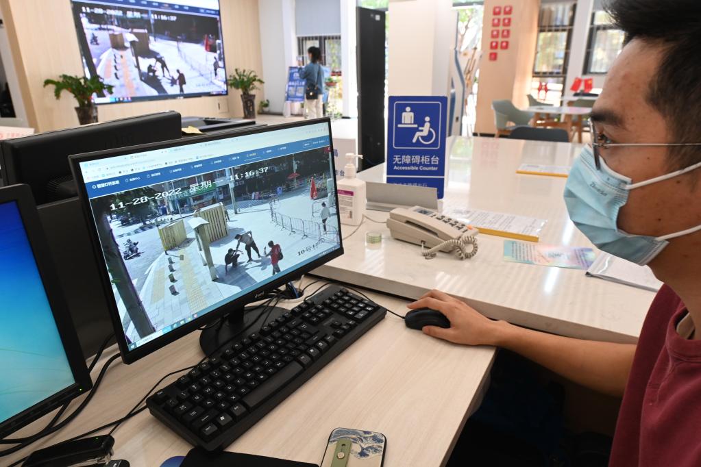 2022年11月28日,福州市福瑞社區便民服務中心社區智慧平臺可即時收到小區周邊智慧燈桿監控拍攝到的路面情況,以及路人需要幫助的信息等。新華社記者林善傳 攝