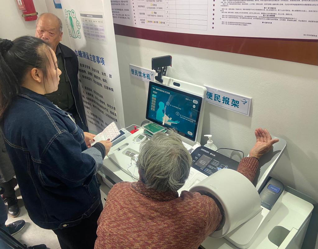 3月28日,麗水龍泉市蘭巨鄉(xiāng)仙仁村村民用“浙麗鄉(xiāng)村好醫(yī)”平臺(tái)做健康監(jiān)測(cè)。新華社記者黃筱 攝