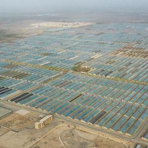 180公里外,喀什地區(qū)莎車縣戈壁產(chǎn)業(yè)園,自空中俯瞰,3300座大棚在茫茫戈壁上整齊排列,場(chǎng)面壯觀。