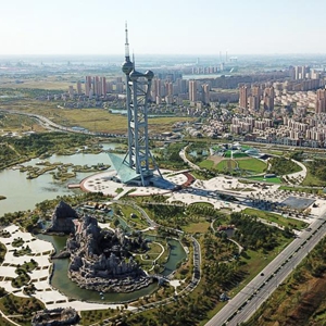 驅車行駛在大慶市高新區,一座名為《源》的19.92米高的紅色城市雕塑引人注目。雕塑采用現代抽象藝術元素,主體3000多個不規則“蜂巢”孔隙均采用3D打印完成。