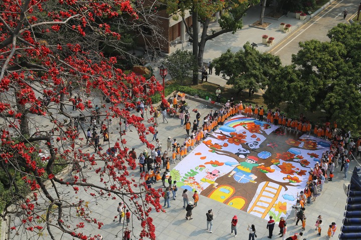 中山紀念堂350多歲的“木棉王”見證百童同繪英雄花。(受訪者供圖)