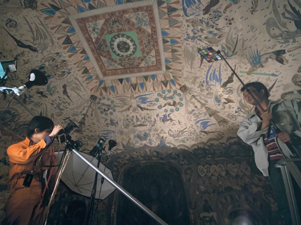 敦煌研究院與東京文化財研究所工作人員在莫高窟第285窟進行攝影研究(資料照片)。敦煌研究院供圖