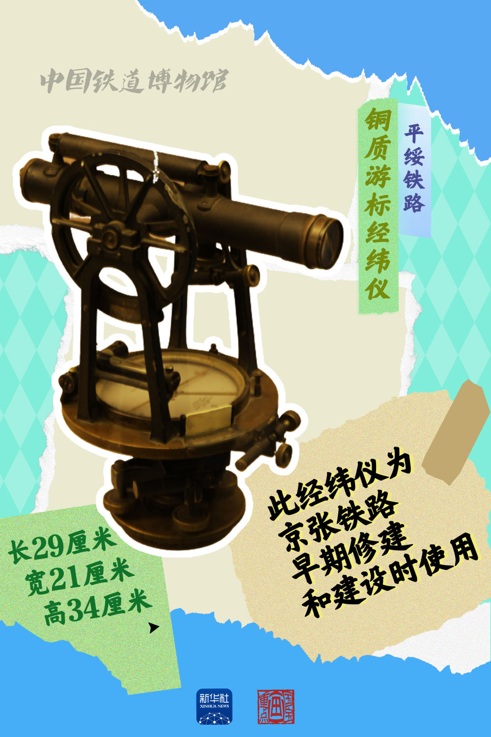 這件平綏鐵路使用的銅質(zhì)游標(biāo)經(jīng)緯儀,為京張鐵路早期修建和建設(shè)時(shí)使用。該經(jīng)緯儀制作精良,在當(dāng)時(shí)屬于具有較高科學(xué)技術(shù)水平的設(shè)備。2009年張家口車務(wù)段將其捐贈(zèng)給中國(guó)鐵道博物館正陽(yáng)門展館。