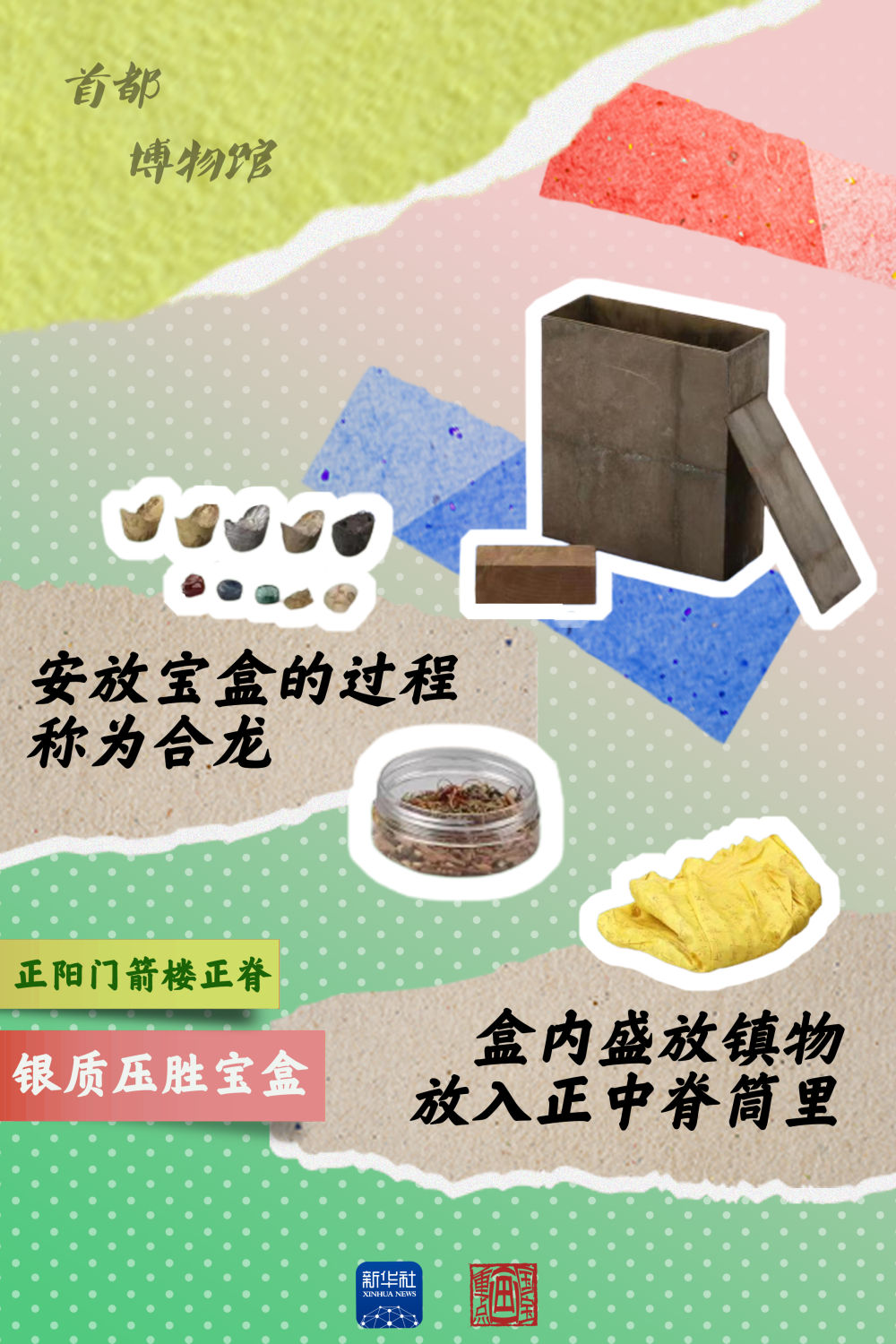 正在北京首都博物館舉行的“輝煌中軸”展覽上,正陽(yáng)門正脊上銀質(zhì)壓勝寶盒引人注目。這個(gè)從正陽(yáng)門箭樓正脊取出來(lái)的寶盒,是能代表北京城市營(yíng)造特色的文物之一。壓勝寶盒是規(guī)模較大的建筑在修建過(guò)程中,于正脊位置專門放置的盒子,有趨吉避兇的寓意。