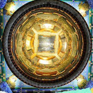 北京古代建筑博物館的鎮(zhèn)館之寶是這座美輪美奐的藻井,整個(gè)藻井的結(jié)構(gòu)為方井內(nèi)含圓井,圓井內(nèi)又含方井。藻井四角立力士雕像,意在托起中心圓井。圓井應(yīng)為六層框架,現(xiàn)存有五層,其中幾層之上布置有天上宮闕。宮闕里有精雕細(xì)琢的仙人天女,表情神態(tài)極為細(xì)膩。藻井的最上方是一幅星象圖,在燈光照射下宛若星河。