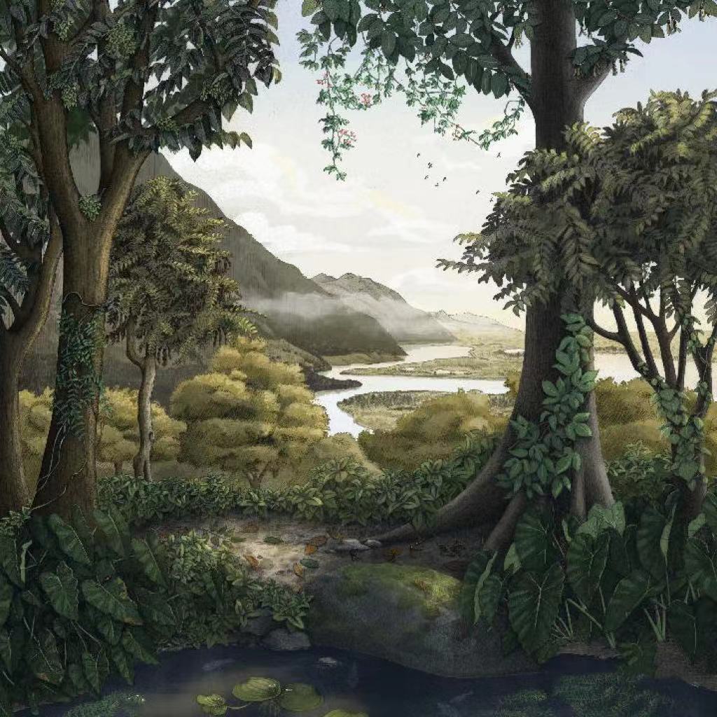 青藏高原部分地區生物群復原圖。(中國科學院西雙版納熱帶植物園供圖)