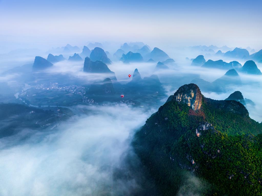 俯瞰喀斯特地貌桂林山水