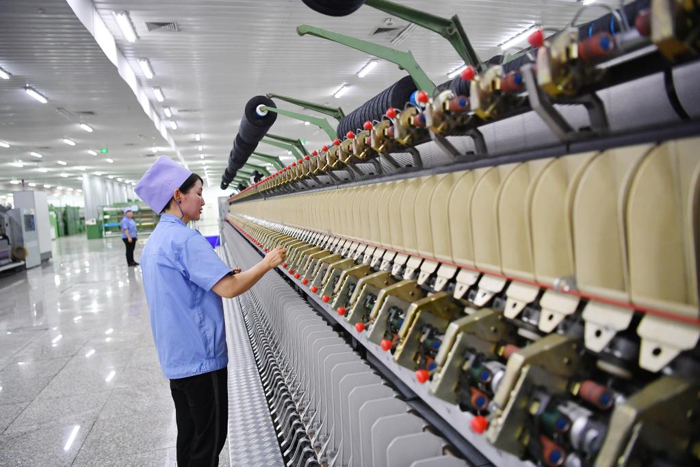 工作人員在新澳羊絨有限公司紡紗車間作業。 新華社記者 王鵬 攝