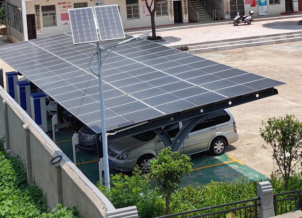 記者注意到,紅畈村村委會門口還新建了一座新能源汽車充電站。充電站的頂棚由一套發電功率為24.3千瓦的光伏板組成。劉勝介紹,充電站最多可儲存200千瓦時電能,在電網負荷高峰時放電,供村民生產生活使用。