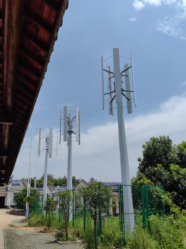 去年來,紅畈村開工建設1兆瓦的屋頂光伏和裝機15千瓦的垂直軸風力發電機。7月初,最后一批屋頂光伏板建成投運,為紅畈村實現能源消耗中碳排放量與減碳量相互抵消奠定基礎。