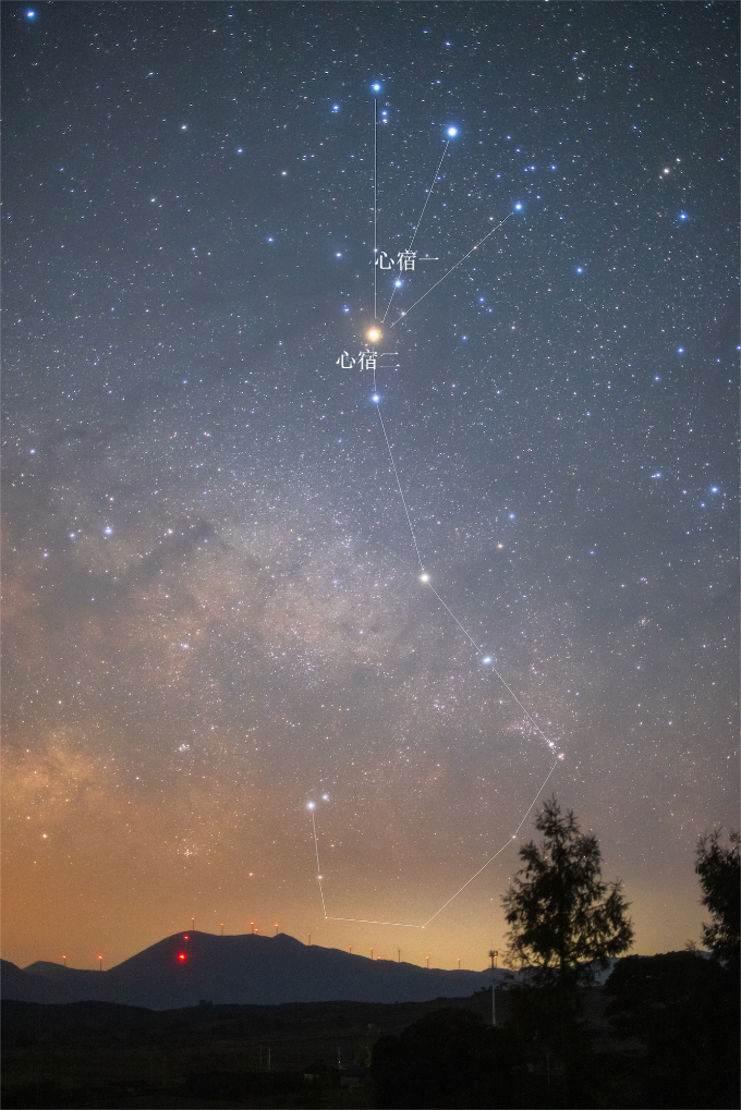 中國天文學(xué)會會員、天津市天文學(xué)會理事賴迪輝介紹,天蝎座是一個著名的黃道星座,是夏季南部天空的標(biāo)志性星座,形象鮮明又醒目。心宿一是天蝎座σ星,屬東方蒼龍七宿的心宿。心宿一是一顆藍(lán)巨星,位于比它更亮的紅色超巨星心宿二(天蝎座α星)附近,亮度為2.9等,較適合肉眼觀測。