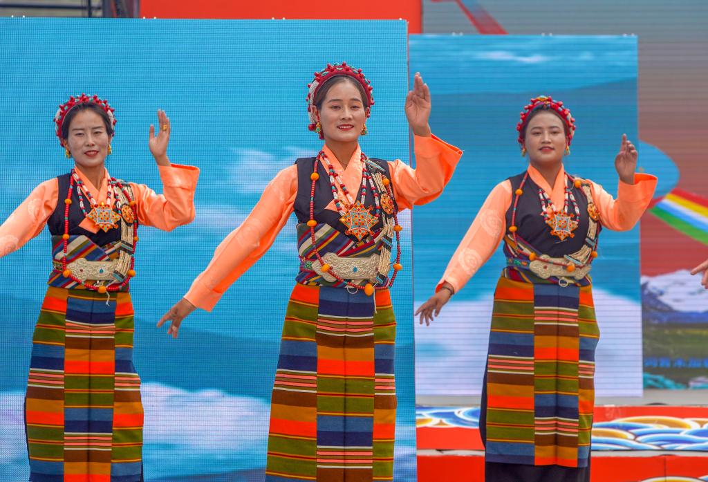 新華社拉薩8月5日電(記者劉洲鵬 邵澤東)4日,位于西藏日喀則市拉孜縣的堆諧人民廣場熱鬧非凡,數千名本地群眾和游客在觀賞堆諧表演。在拉孜縣第八屆堆諧文化旅游推介會上,拉孜縣藝術團“90后”演員格桑卓瑪頭戴華麗的巴珠(綴滿珠玉的藏族頭飾),身穿明艷的邦典(藏族色條圍裙),唱著輕快歡樂的藏歌,腳上的踢踏動作隨著悠揚的扎木念琴聲時快時慢,引得臺下觀眾高聲喝彩。