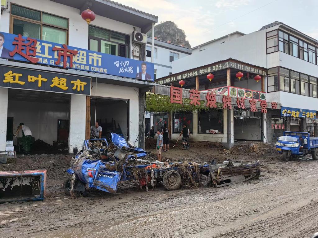 眼下,洪水雖然退去,但遺留下的災害痕跡依然觸目驚心:街道上淤積著棕黑色污泥,散發著刺鼻臭味;被洪水沖毀的車輛,廢棄在道路兩旁,車內堆積著淤泥、雜草;部分臨街商鋪一樓門窗被毀,地板上淤泥厚度約有1米……