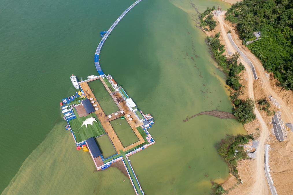 7月29日拍攝的景江水上運動中心(無人機照片)。(杜子璇 攝)