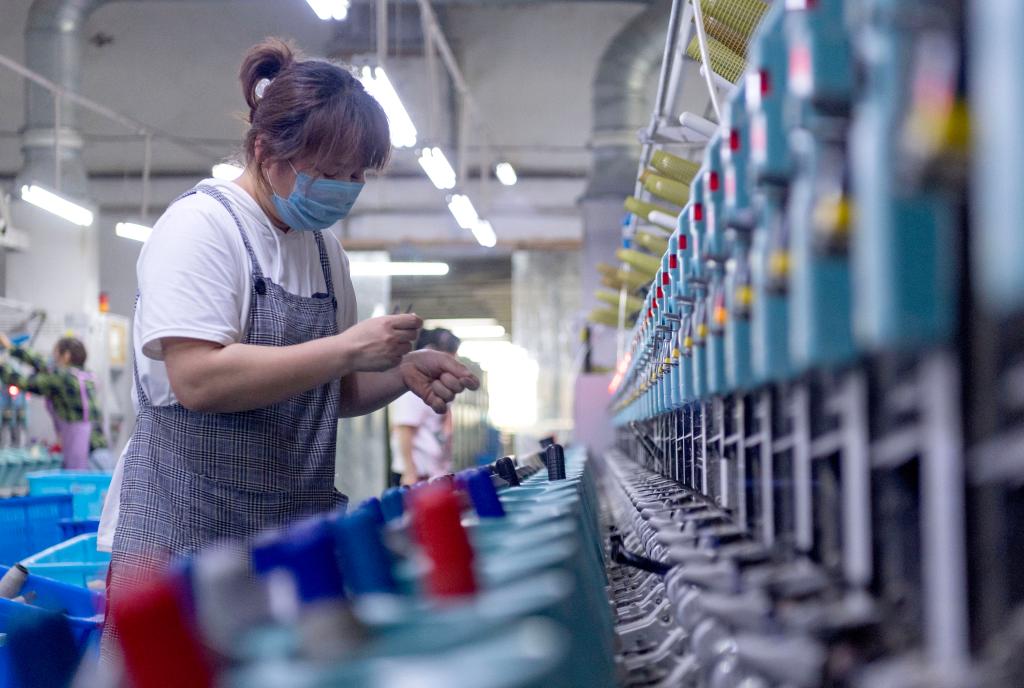 黑龍江穆棱一家亞麻紡織企業的工人進行生產作業。新華社記者 謝劍飛 攝