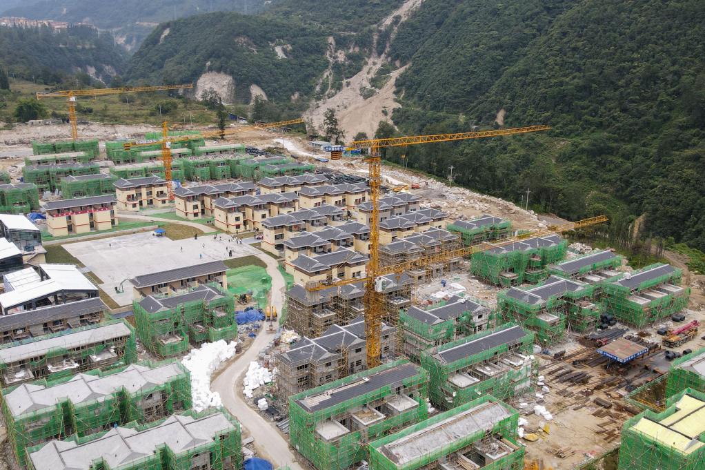 9月5日拍攝的位于甘孜州瀘定縣磨西鎮(zhèn)的幸福新村安置點(無人機照片)。新華社記者 胥冰潔 攝