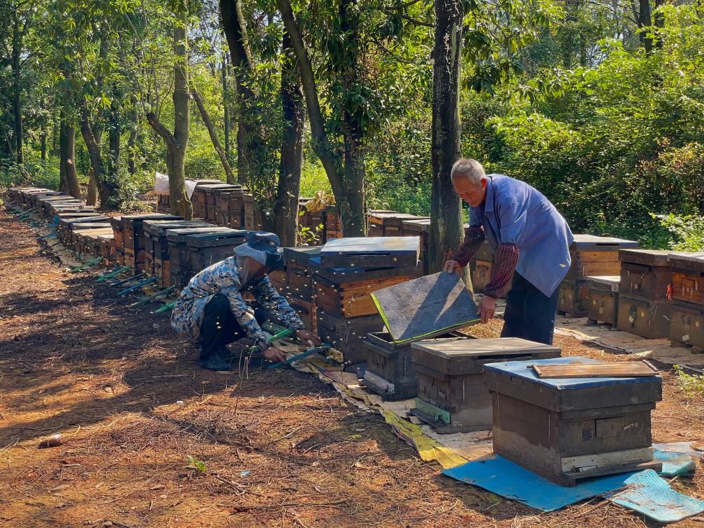 圖為傅志明(右)和傅小林在整理蜂箱。新華社記者陳柱佐 攝