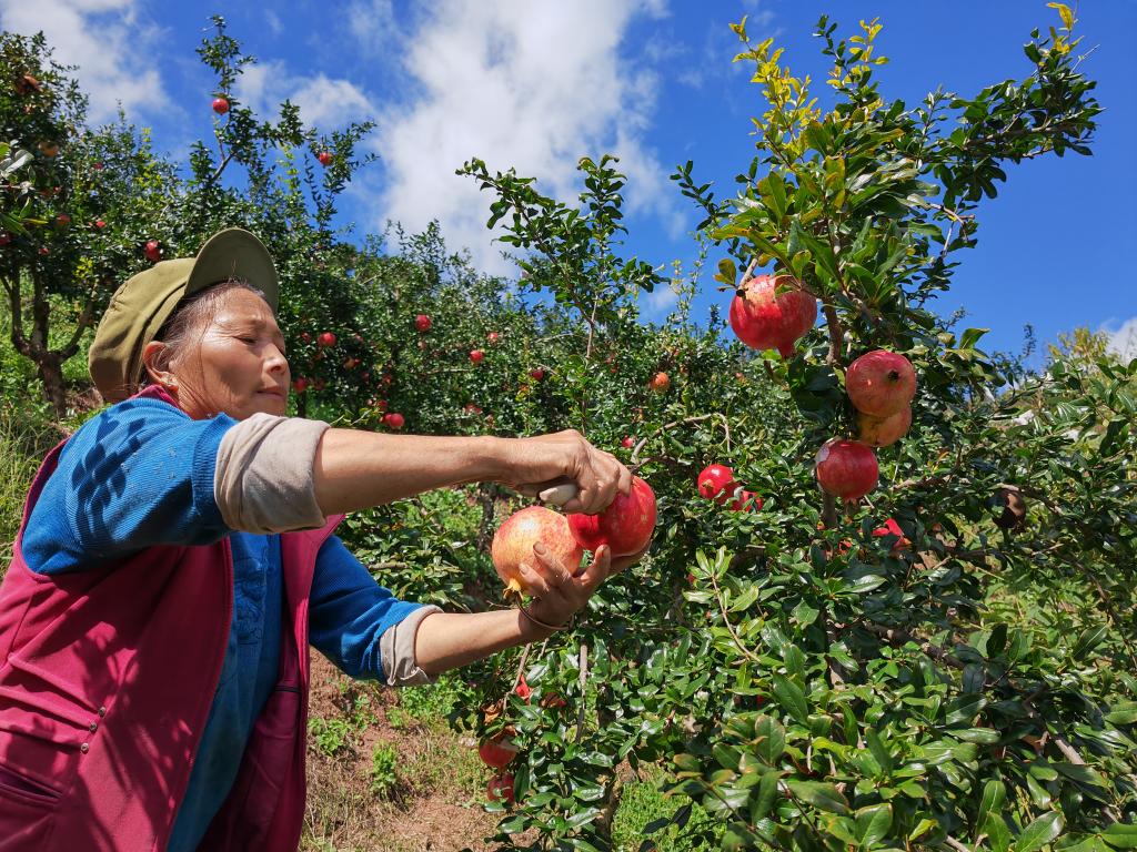 9月19日,會理市彰冠鎮魁閣村,石榴采摘場景。新華社記者江毅 攝