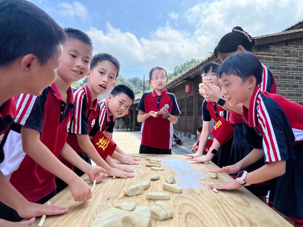江西永新縣曲白鄉(xiāng)白沙村大井岡研學(xué)基地里小游客們正在體驗(yàn)勞動(dòng)實(shí)踐。(劉昕哲 攝)