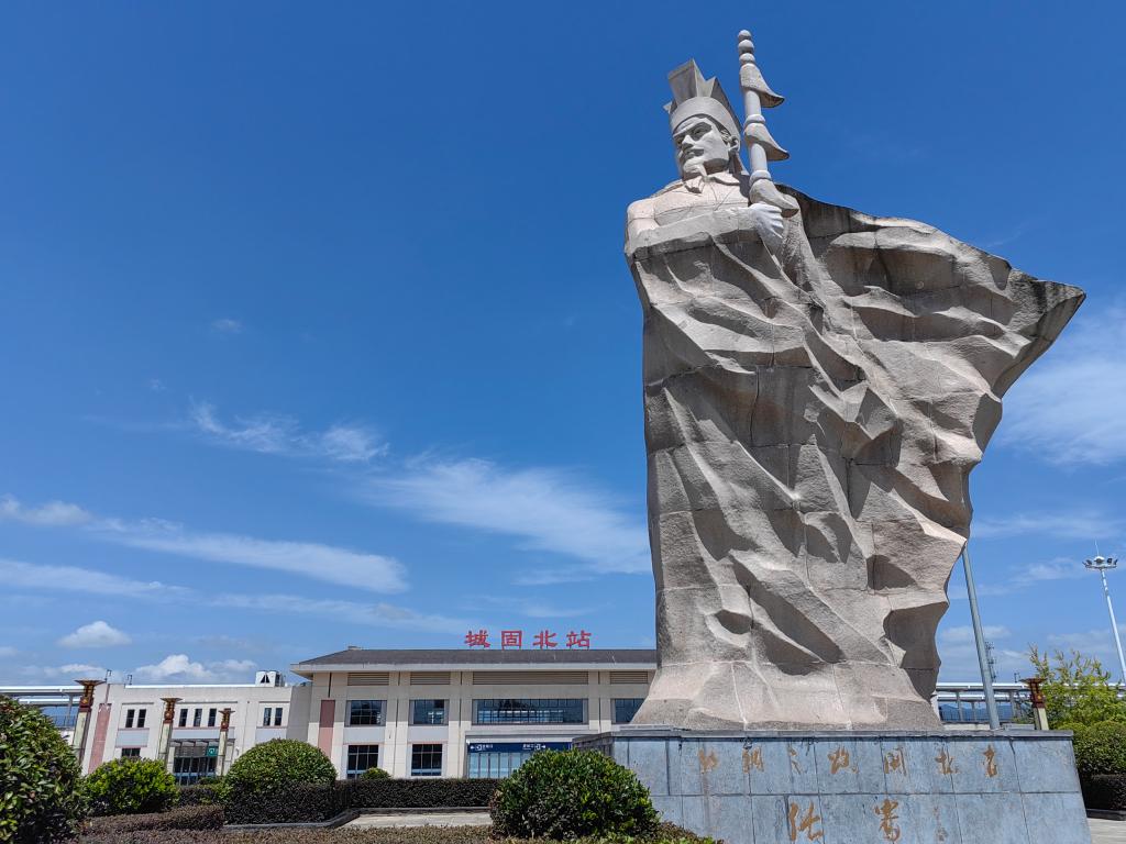 城固北站的張騫雕塑。新華社記者 孫正好 攝