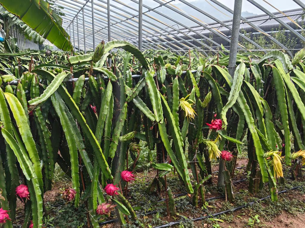 南麻街道辦事處許村大棚里的火龍果。(新華社記者邵琨攝)