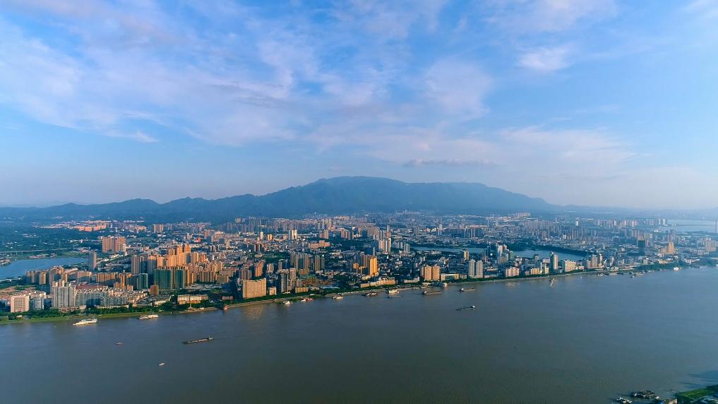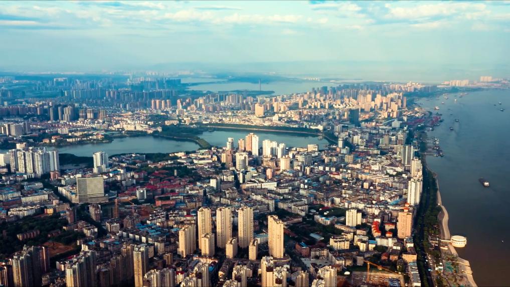 九江舊名潯陽,長江流經九江段被稱為潯陽江。秋高氣爽,俯瞰潯陽江畔,秋水長天一色,兩湖長堤相印,風景美如畫。