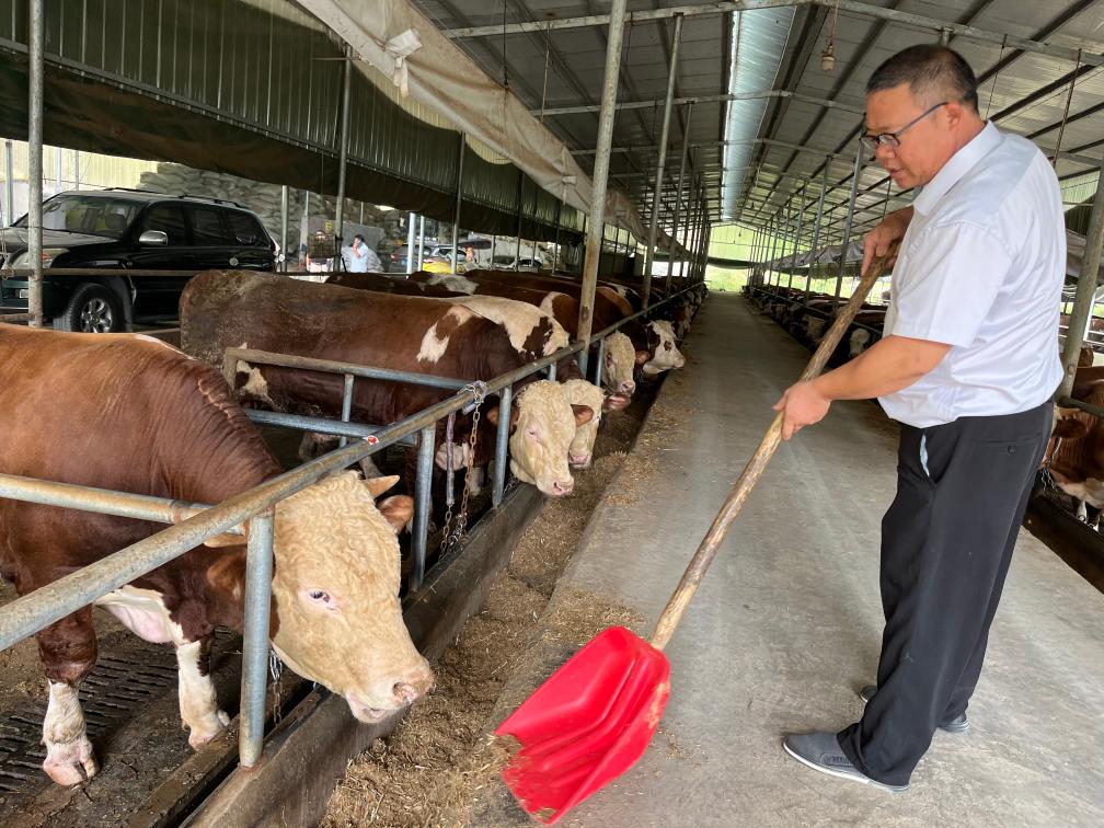 此后,村干部除日常事務外,帶領脫貧戶養牛成了主要工作,并由歐陽樅專職分管。他每天早中晚三次巡查養牛場,解決技術難題,還在養牛場安裝了8個攝像頭,可以在手機上隨時監控。村干部彭春輝等幾個人輪流值班,誰有空誰搭把手,人人把牛當成寶。5名脫貧戶受雇在養牛場干活、領工資,還有10多名脫貧戶經常打點短工。2022年12月,第一批牛順利出欄,除去成本、開支,村集體當年就增加純收入30萬元,還給20戶脫貧戶每家發放了4000元分紅。