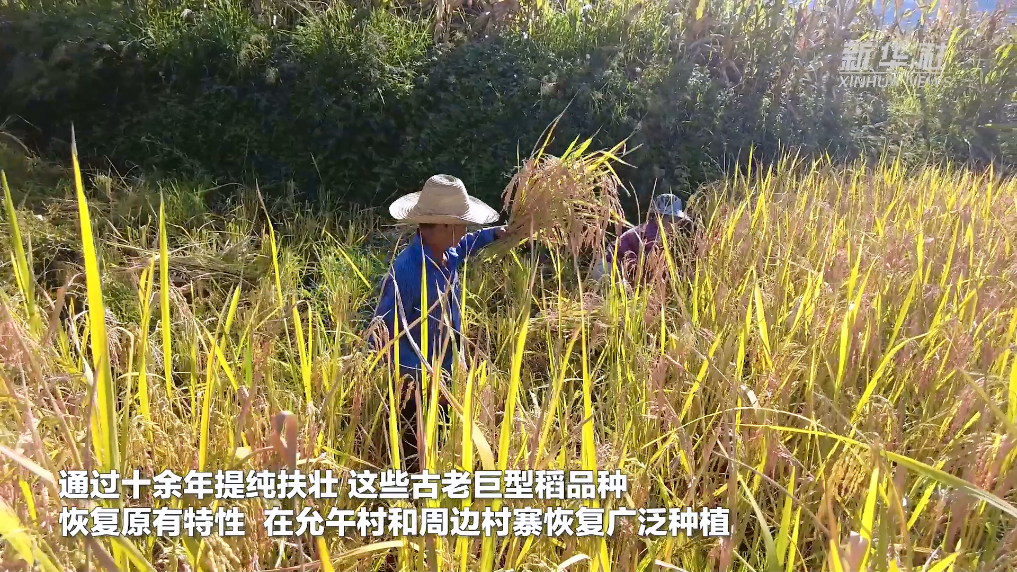 云南省德宏州芒市遮放鎮(zhèn),因遮放貢米而出名。秋收末尾,遮放鎮(zhèn)允午村的半山腰上,農(nóng)民正在太陽(yáng)下收割這種巨型稻,今年的遮放貢米迎來豐收。