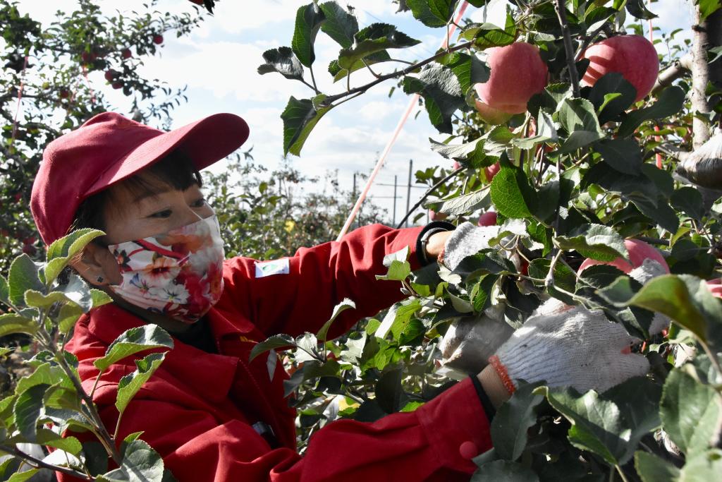 “我每天早晨七點半開始采摘、分揀、裝箱,一直干到下午六點,經手的蘋果得兩三千斤。”果農尚生艷說著便掰開一個蘋果,鮮明的糖心上還流著汁水。