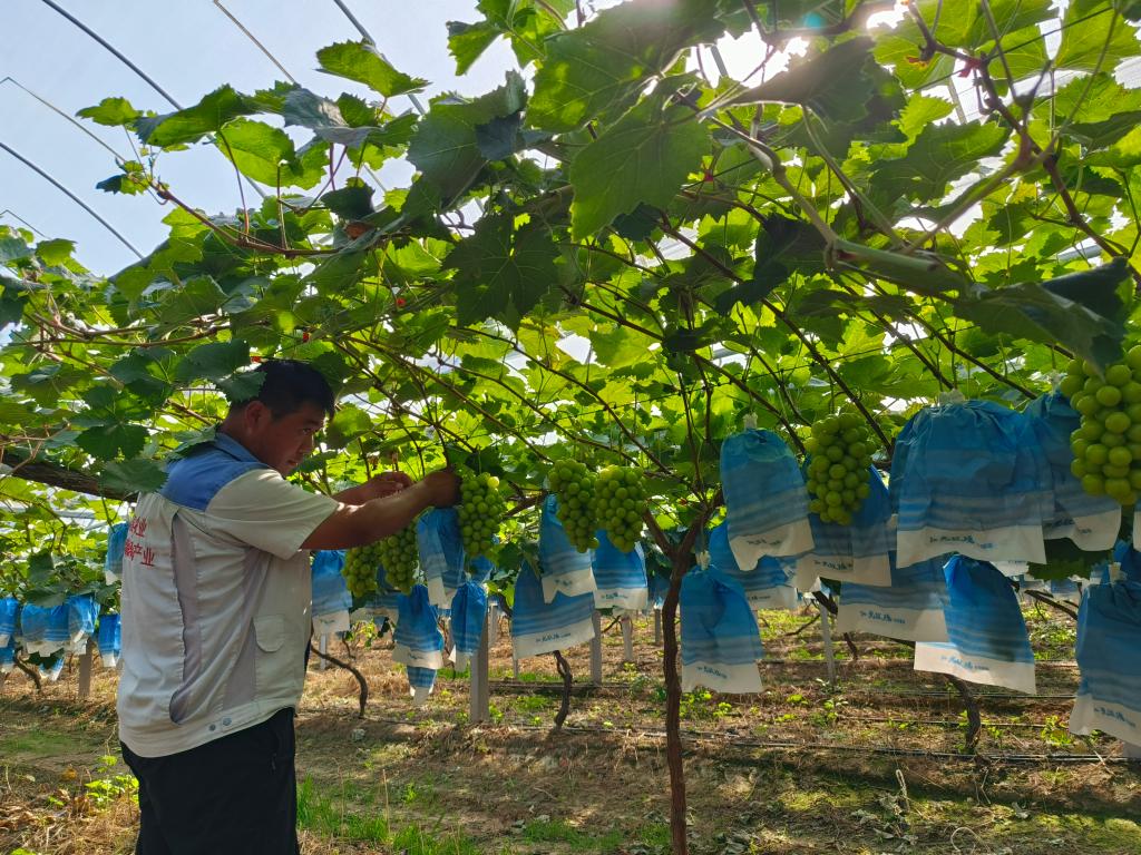 金秋時節,山東省濰坊市昌樂縣營丘鎮朝陽官莊村的葡萄迎來了豐收季,果農們忙著采摘一串串成熟的陽光玫瑰葡萄。“我種的‘火山葡萄’粒大、果甜,每斤價格比同品種葡萄貴兩元多,很多收購商慕名過來采購。”種植戶田開春說,今年他種了110畝葡萄,畝均純收入2萬多元。