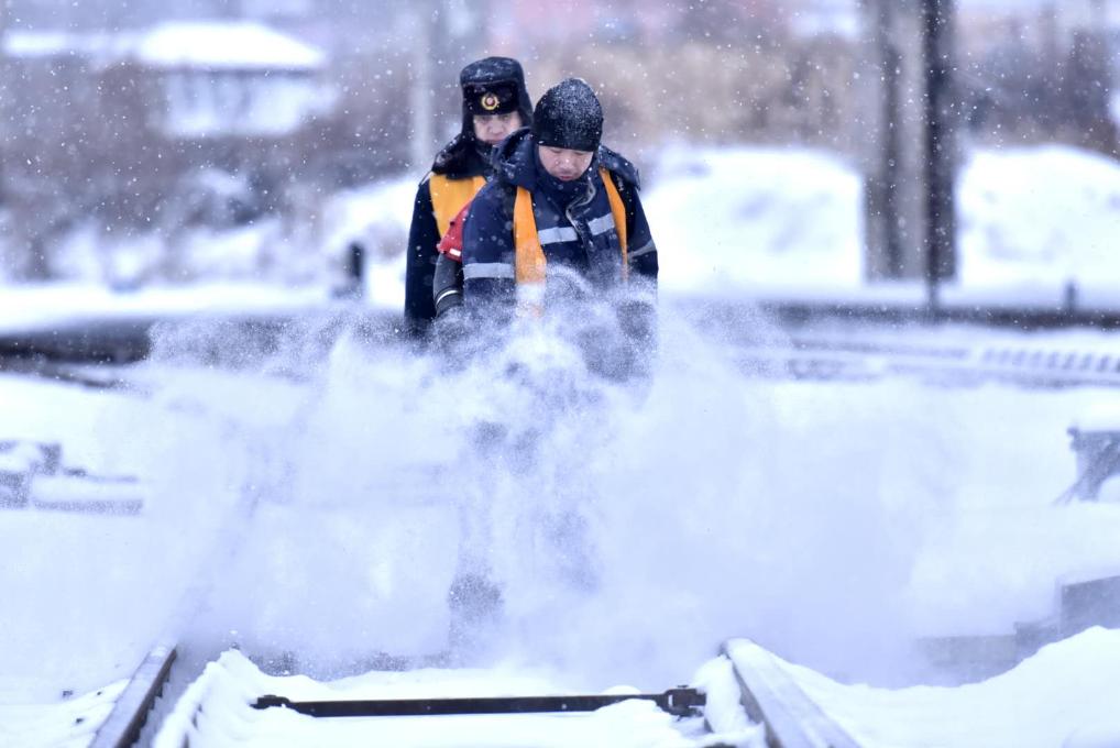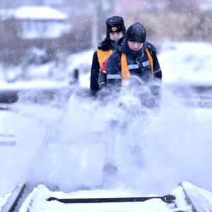 “為了提高清雪效率,我們事先調集了大功率風力除雪機、重型軌道車、除雪車輛等清雪設備。”哈爾濱局集團公司牡丹江工務段生產調度指揮中心主任馬河海說,職工們以雪為令,目前都奮戰在抗擊暴雪一線。