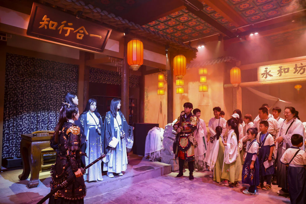 王子沐的母親沈女士對這樣的娛樂形式很贊同:“我們昨天去了東平湖和大宋不夜城玩,然后偶然間看到這里有這樣一個寓教于樂的互動劇場,就帶她來玩了。”