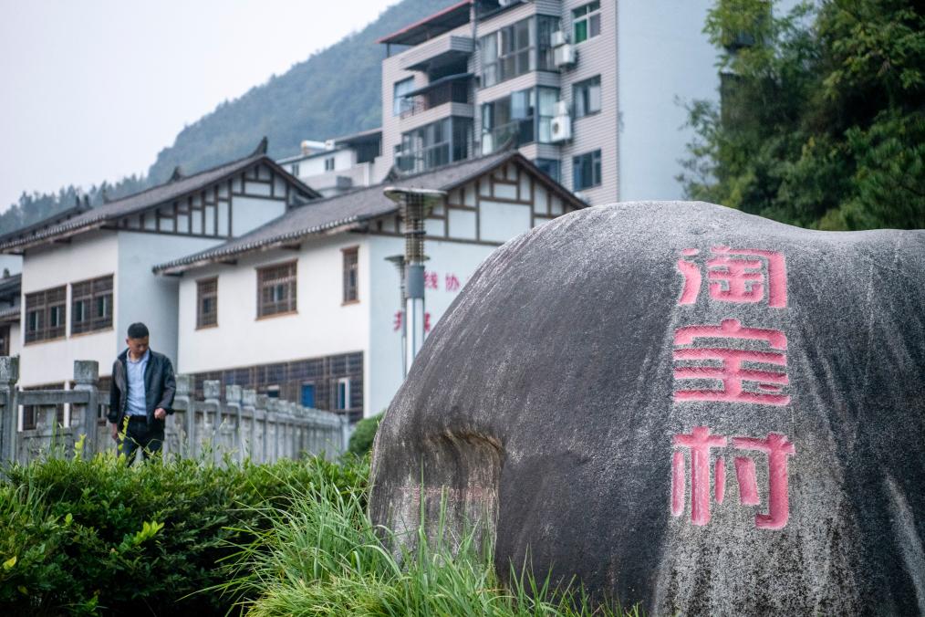 10月11日在湖北省鄖西縣下?tīng)I(yíng)村拍攝的“淘寶村”標(biāo)志。新華社記者伍志尊 攝