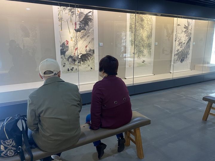 由抱青會館轉型的杭州國畫院美術館內,一對老夫婦在賞畫。新華每日電訊記者 朱涵 攝