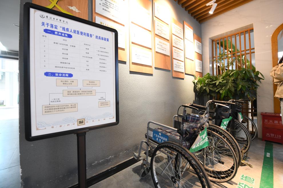 在德陽市人民醫院,記者注意到,在醫院門診大廳配置有可免費使用的輪椅或平板車,醫院所有診療區域均設置有無障礙通道,可以滿足平板車、輪椅通行。門診高峰時段,還有志愿者在主要診療區域向殘疾人群體提供講解、引導等幫助和服務。