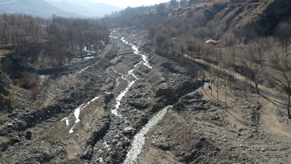 被大范圍挖開的尕讓河河道。新華社記者 李占軼攝