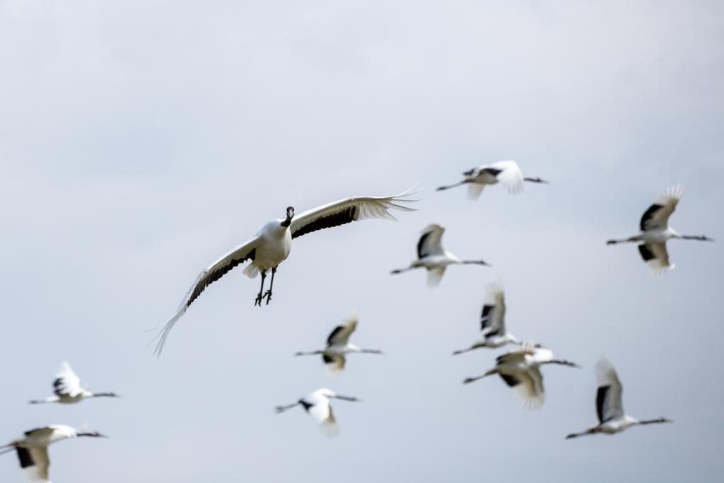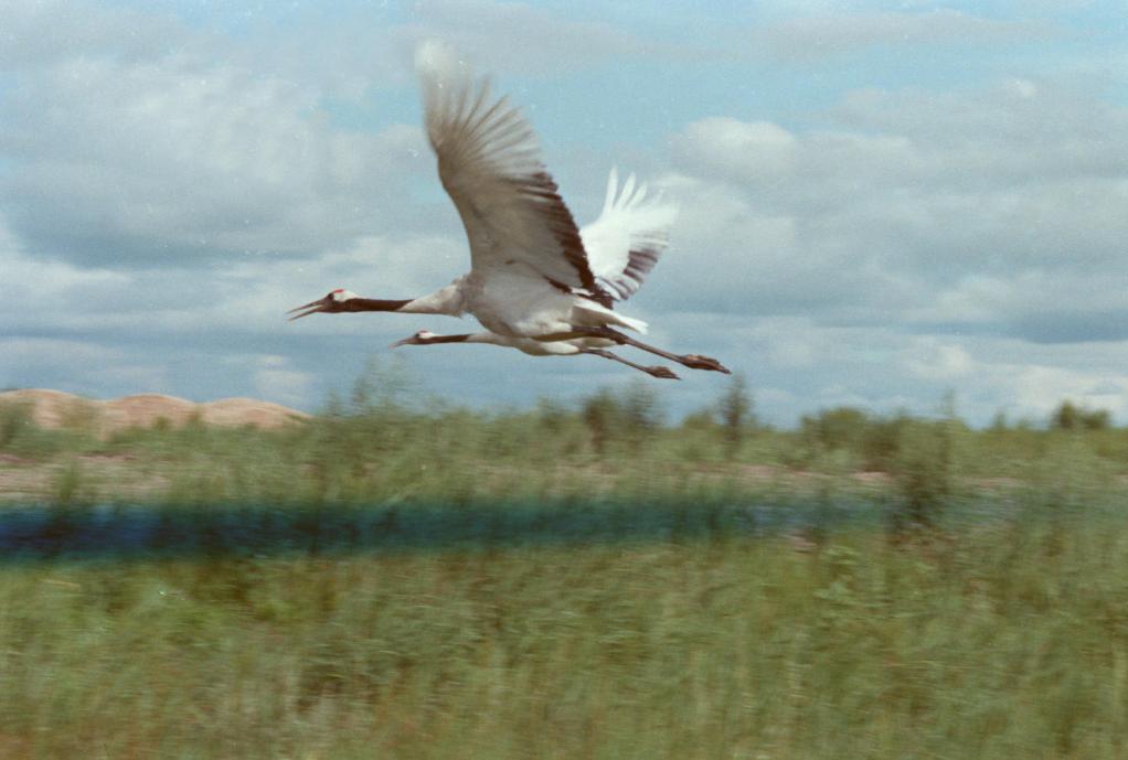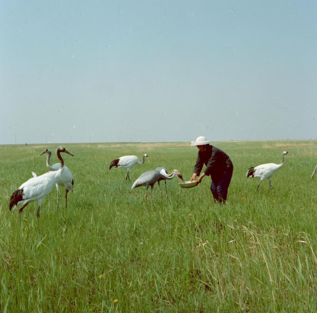 1981年在扎龙自然保护区苇塘中拍摄的丹顶鹤。