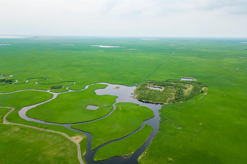 2023年6月29日拍摄的扎龙自然保护区景色(无人机照片)。
