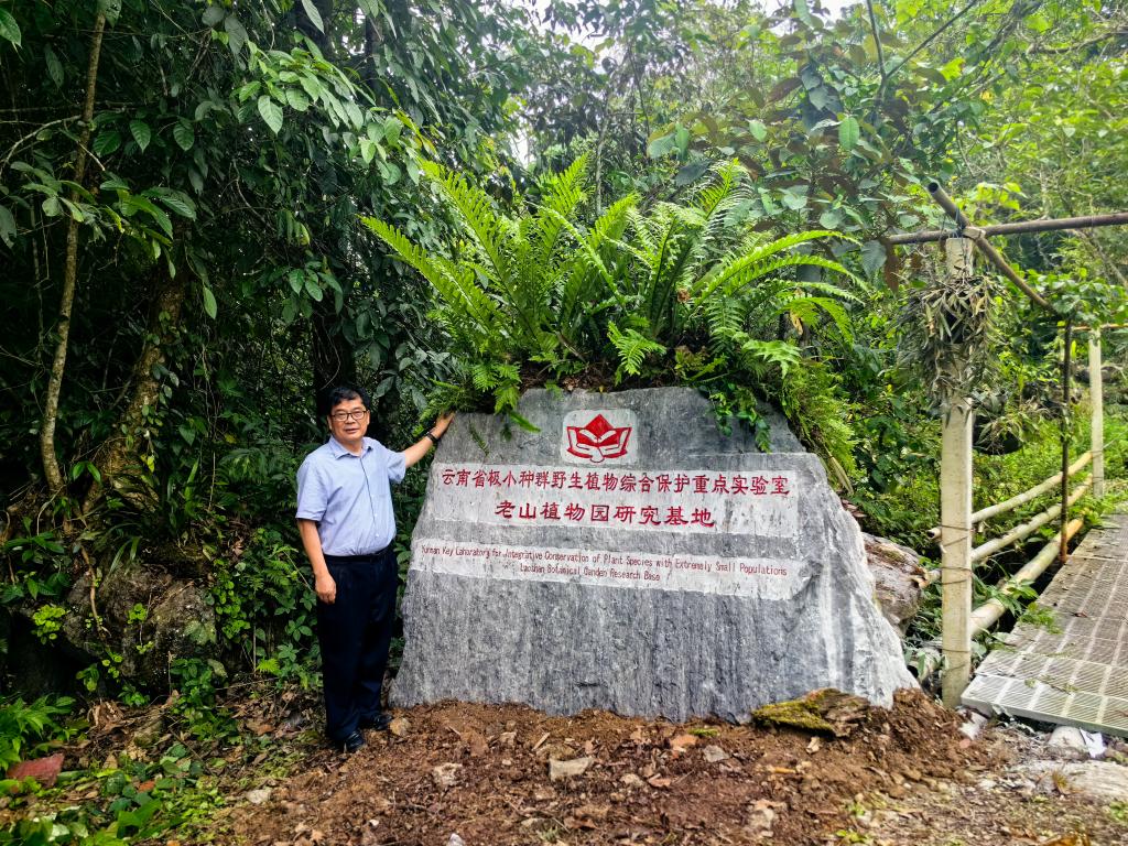 孙卫邦在云南省文山州麻栗坡县老山植物园的一个研究基地留影。新华社发(受访者供图)