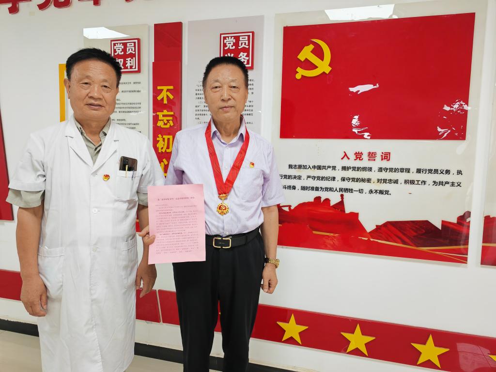 为李长海颁发纪念章的是西安市高陵区医院退休党支部书记杜军政,从2021年至今,他已经为6名党员颁发过“光荣在党50年”纪念章。“每一次颁发纪念章,都会听老党员讲一讲他们的故事,都是一次精神的洗礼和传承。”